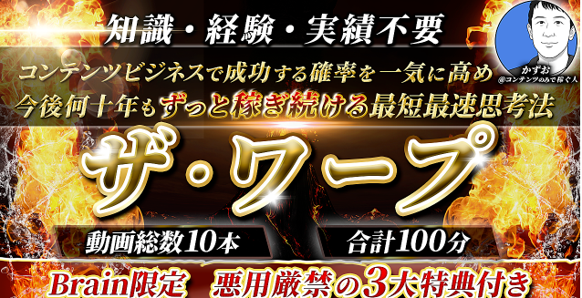 コンテンツビジネスの成功確率を一気に高める最短最速思考法 ザ・ワープ(かずお)は何が学べるの?