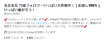 るなのアカウントも、本当に同じことしかツイートしてないのに5000フォロワー超えたよ?