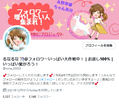 - あなたのTwitterアカウントをるなのアカウントが拡散サポート(30日間)