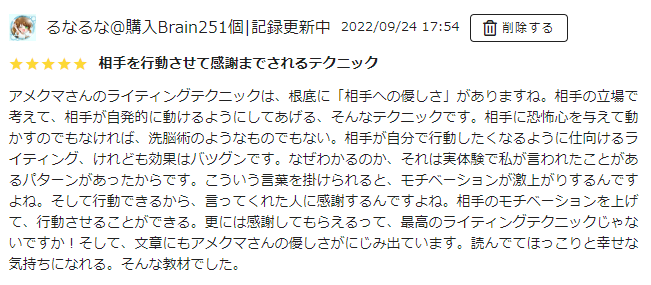 参考までに、これがるなが書いたレビューです。
